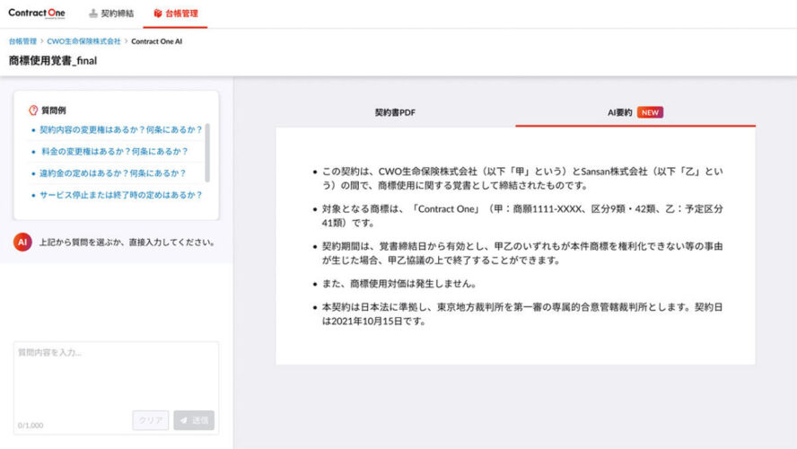Sansan、契約DXサービス「Contract One」にGPTを活用した「AI要約機能」を実装