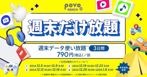 KDDIおよび沖縄セルラー電話は3日、オンライン専用の料金プランとして提供している携帯電話サービス「povo2.0」( https://povo.jp/ )において期間限定のお試しトッピングとして「データ追加(0.5GB)」を2025年6月3日(火)10:00から8月31日(日)23:59まで提供するとお知らせしています。価格(金額はすべて税込)は550円で、高速データ通信をそれほど利用せずに通信料金を安く抑えながら高品質な回線を使いたい人にオススメとなっています。